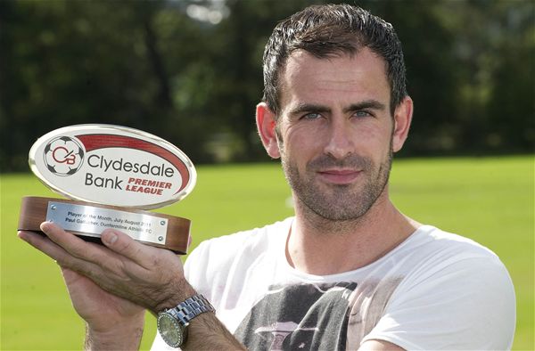 Gallacher has been in superb form throughout the month, helping his team by recording three clean sheets as Dunfermline made an impressive start in their return to the Clydesdale Bank Premier League. Gallacher demonstrated his value to the side with two vital penalty saves, the first in their Clydesdale Bank Premier League opener, a 0-0 draw at home against St Mirren and another in their first win of the campaign, a 1-0 win at St Johnstone. As well as keeping blanks in those two games Gallacher also kept a clean sheet in his sideâs 1-0 win over Dundee United. It was this outstanding string of performances that led the panel to vote him as their Clydesdale Bank Premier League Player of the Month.