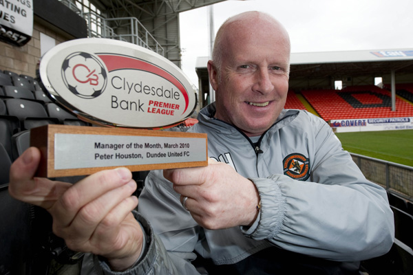 Dundee United Manager Peter Houston has been named Clydesdale Bank Premier League Manager of the Month for March.