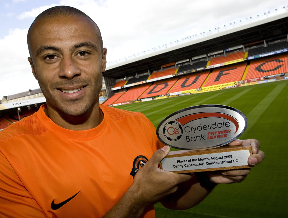Dundee United forward Danny Cadamarteri has been named Clydesdale Bank Premier League Player of the Month for August.