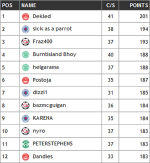 The top 12 Score Selector players for 2009/10 finished as follows: